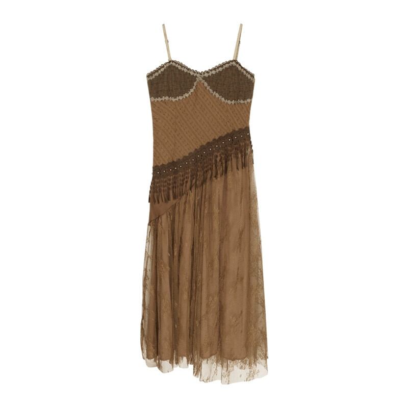 中国風の v ネックサスペンダードレス女性の夏のレトロなネクタイスカートデザイン重工業メッシュスプライシングロングスカート サマー 夏物 Vネック berry76587857038 | beaute25