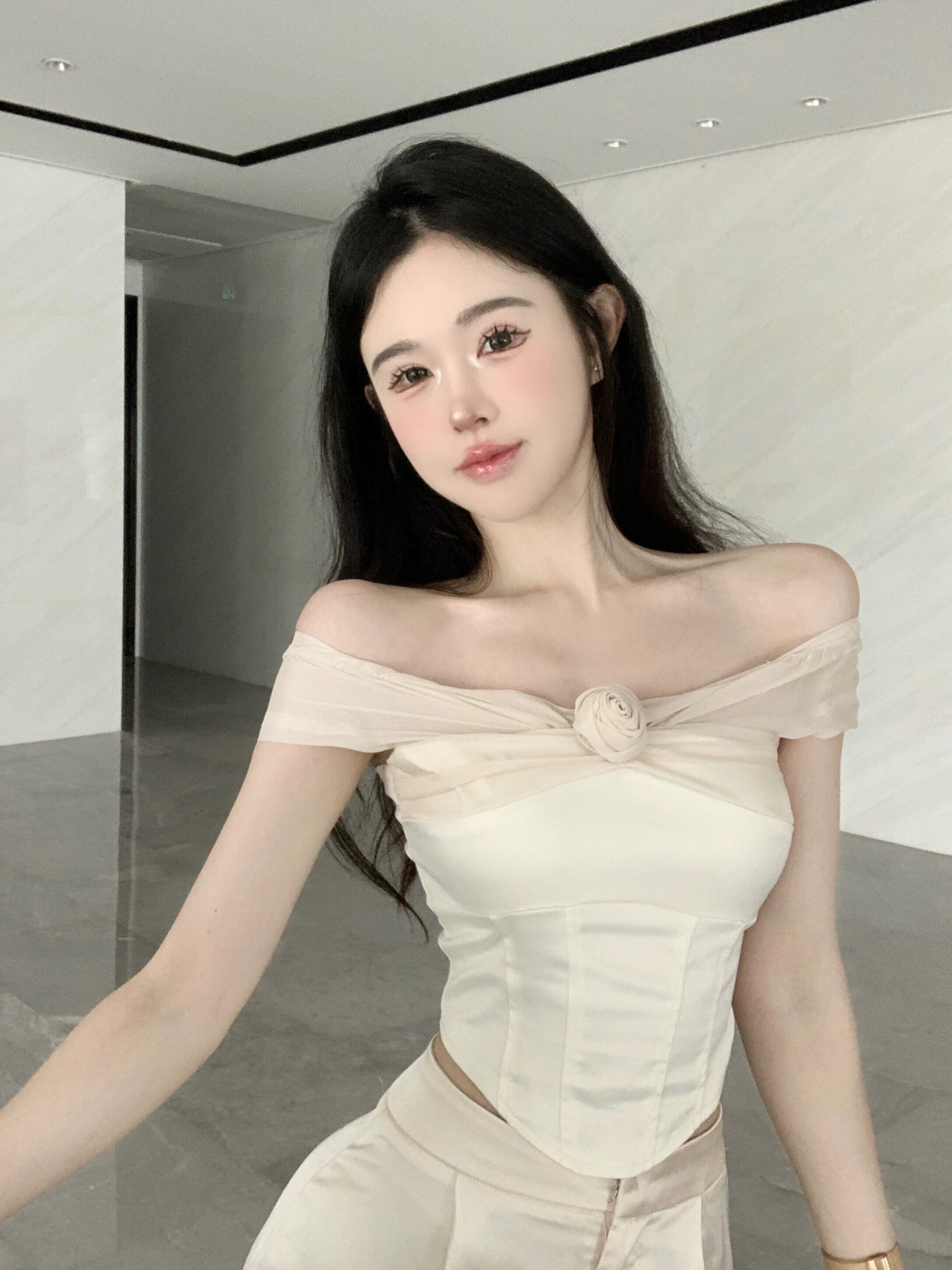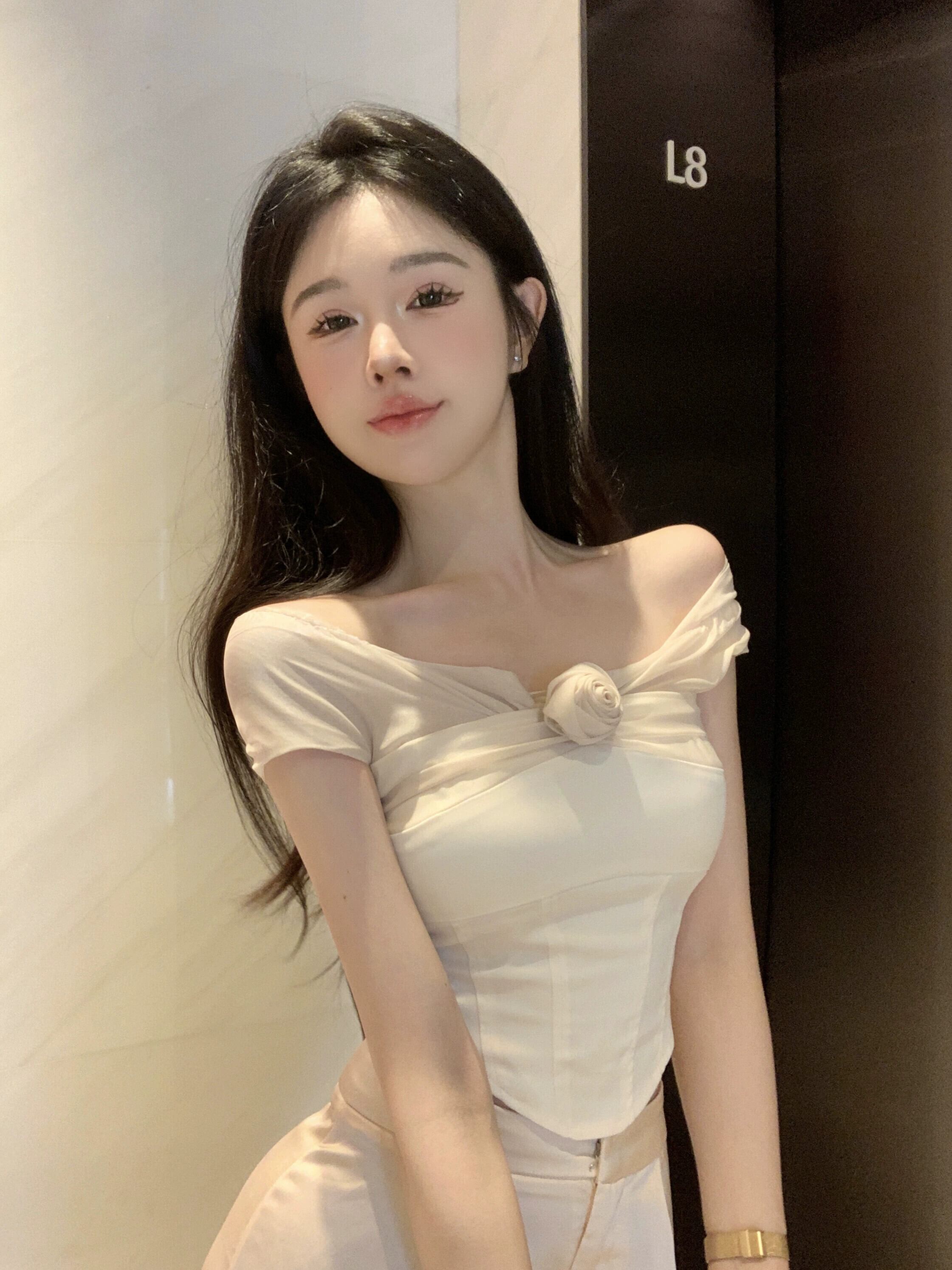 甘いワンショルダー半袖 Tシャツ女性の夏の気質フラワーデザインニッチフィッシュボーンセクシーなショートトップ 大人ガーリー スウィート キュート カジュアル サマー 夏物 berry41398464147 | beaute25