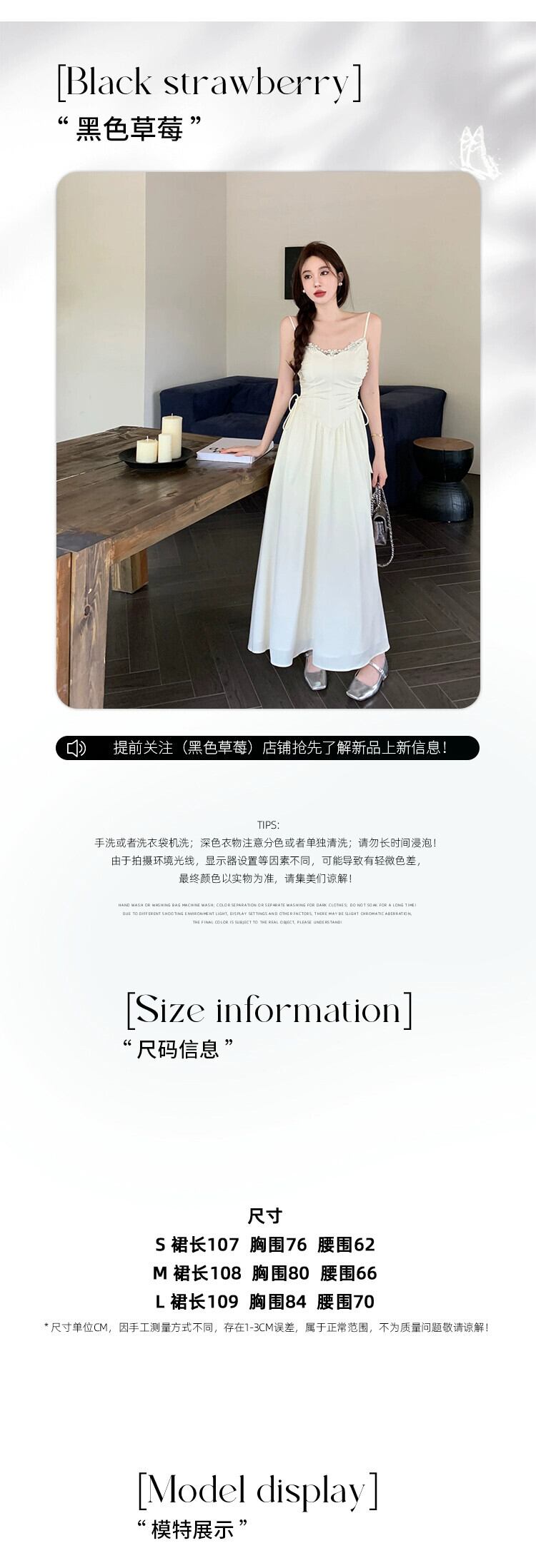 純粋な欲望スタイルサスペンダードレス女性の夏の甘いスカート気質巾着 v ネックレースノースリーブロングスカート 大人ガーリー スウィート キュート カジュアル サマー 夏物 Vネック berry67590939912 | beaute25