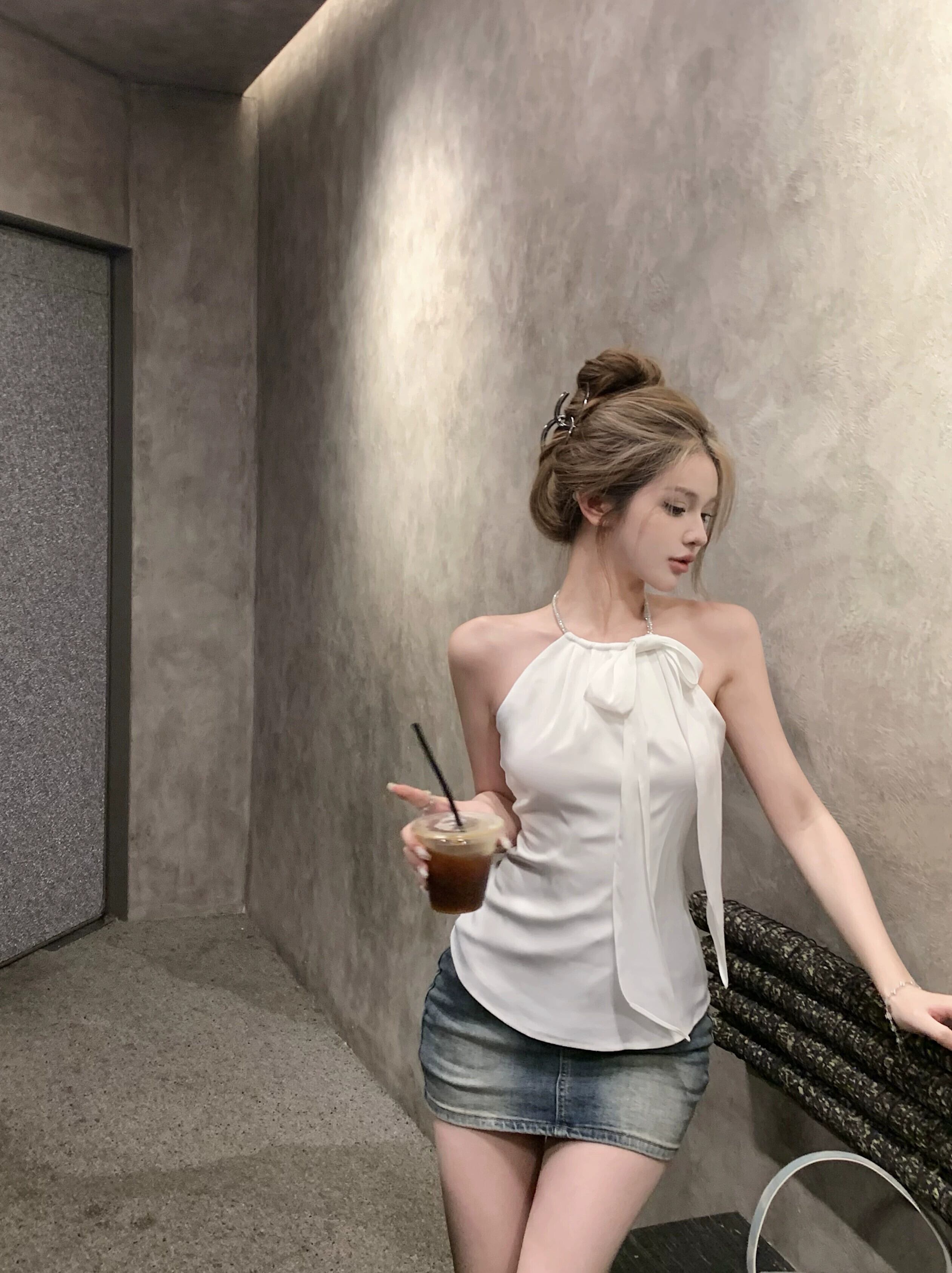 純粋な欲望セクシーなネクタイサスペンダー女性の夏のハイエンドサテンホルタートップはスリムな背中の開いたノースリーブベストを着用します サマー 夏物 berry73072297990 | beaute25