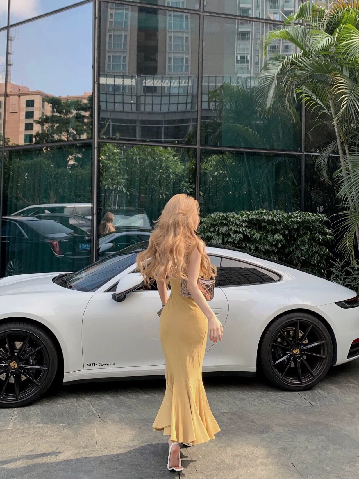 セクシーなホットガールライトイエローサスペンダードレス夏のウエストノースリーブスリムフィッシュテールヒップスカート気質ロングスカート サマー 夏物 berry89904241136 | beaute25