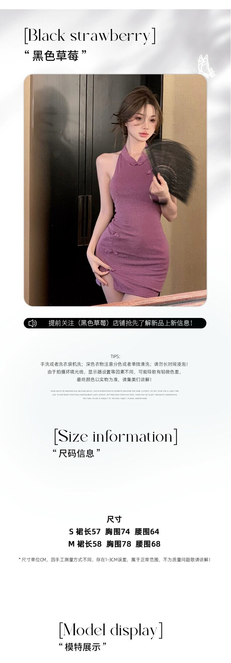 中国風の改良された夏のチャイナドレス女性、純粋な欲望のスタイル、セクシーなヒップハグショートスカート、ウエストレスバックレスホルターネックスカート サマー 夏物 ピュア berry7321242197 | beaute25