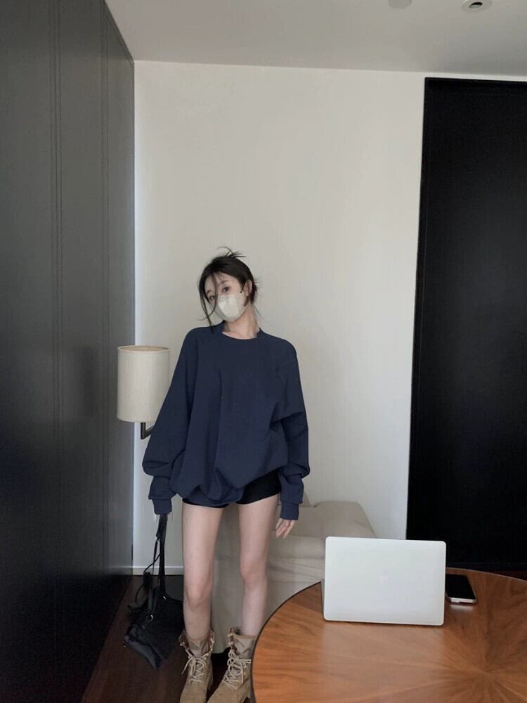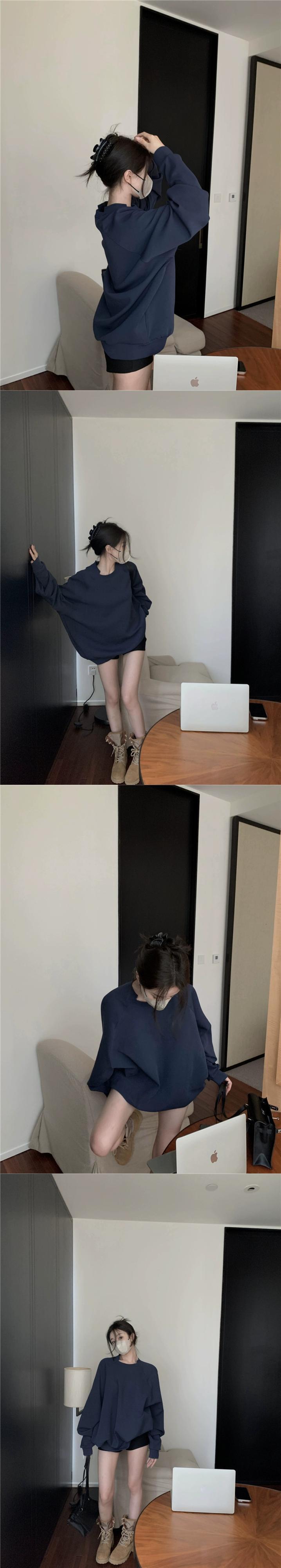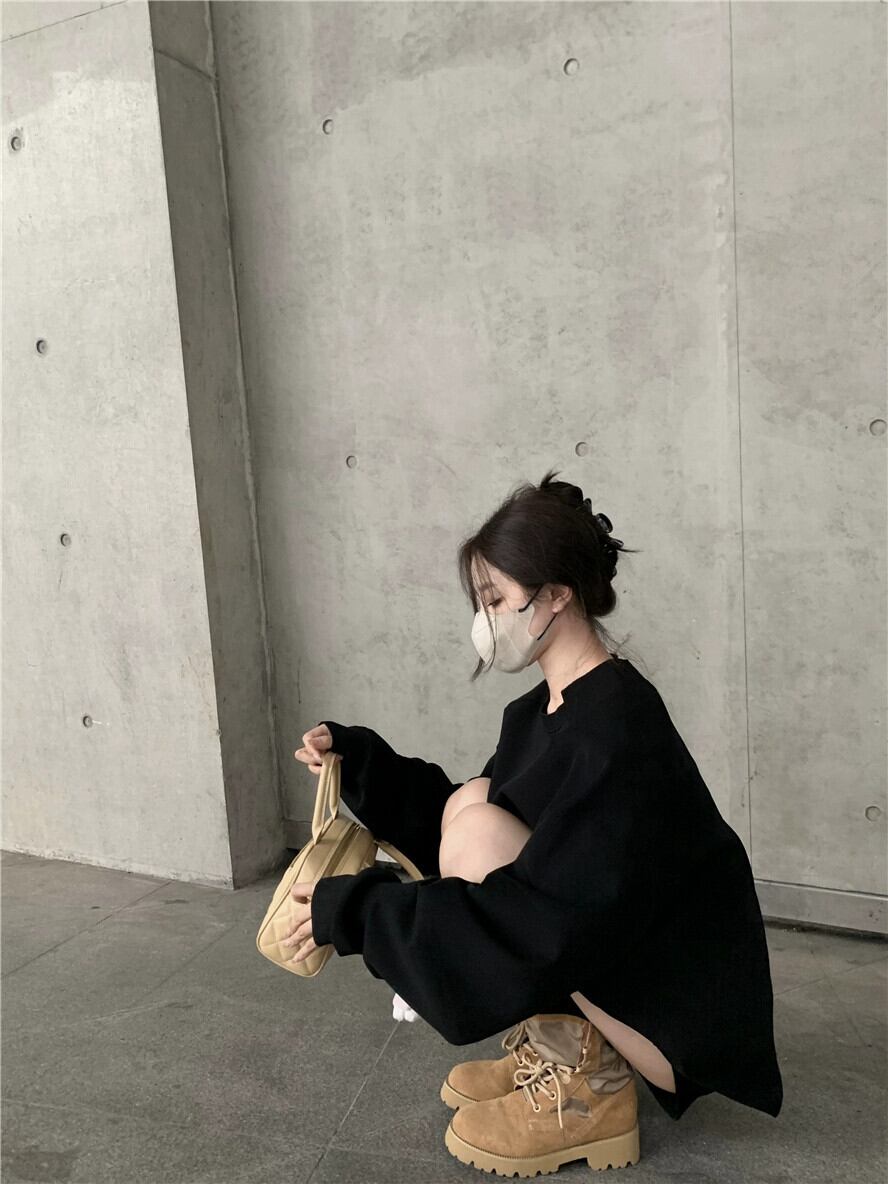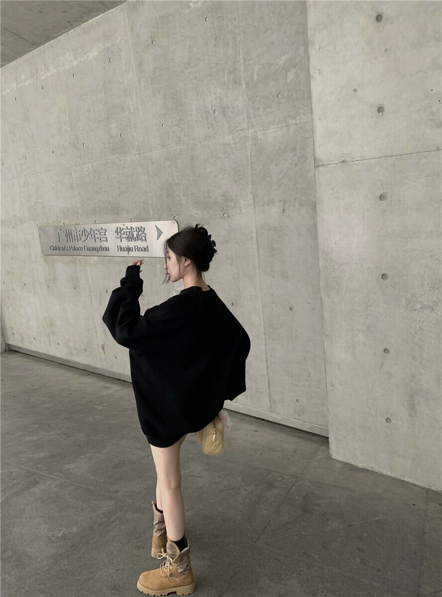 怠惰なスタイルの黒の長袖 bm スウェットシャツの女性の秋冬 2023 新しいデザインのユニークでユニークなルーズカジュアルトップ ロング ブラック オータム 秋物 ウィンター 冬物 berry92436654218 | beaute25