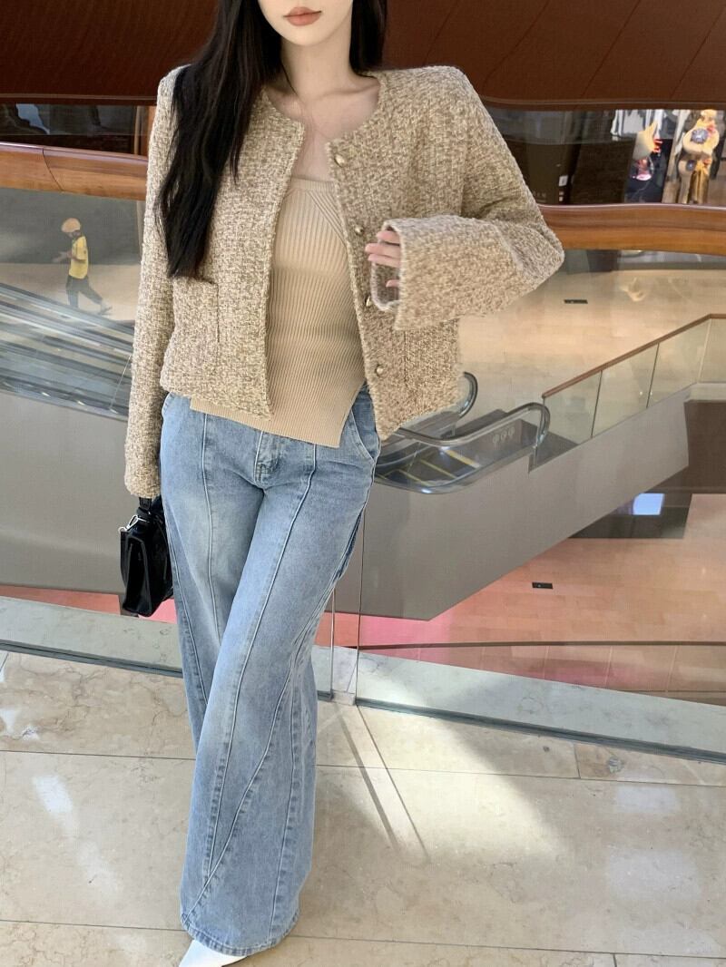 気質小さな香りの良いスタイルツイードジャケット女性早春 2024 新しいスタイルの小さなルーズショート長袖カーディガントップ ロング スプリング 春物 berry54009098534 | beaute25