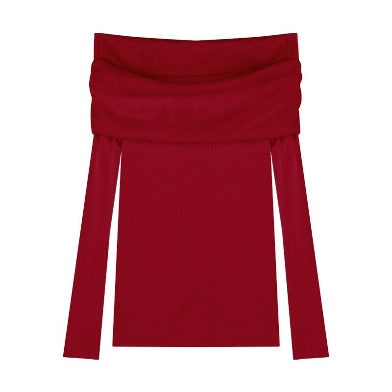 春先の赤いワンショルダー セーターの女性、オフショルダーの長袖プルオーバー ボトミング トップが付いているセクシーな怠惰なスタイルのセーター ロング レッド スプリング 春物 berry97616077937 | beaute25