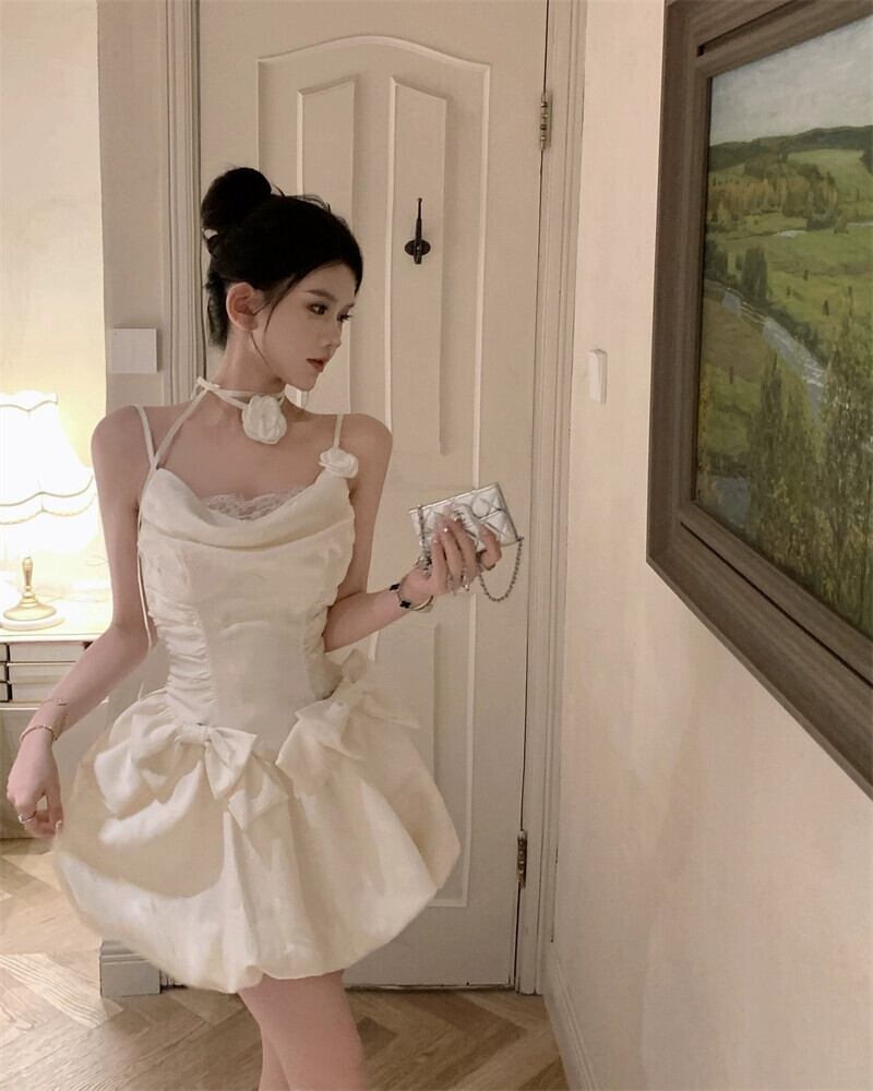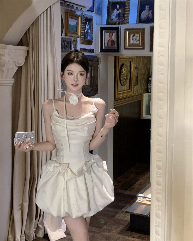 ウエストリボンサスペンダードレスの女性の夏の立体花のスカート純粋な欲望セクシーな背中の開いた花のつぼみスカート サマー 夏物 ピュア フラワーデザイン berry52482860884 | beaute25