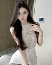 白いレースのかぎ針編みドレスの女性の夏の気質ノースリーブタイトスカート純粋なセクシーなセクシーな腰カバーショートスカート ホワイト サマー 夏物 ピュア berry3788568063 | beaute25