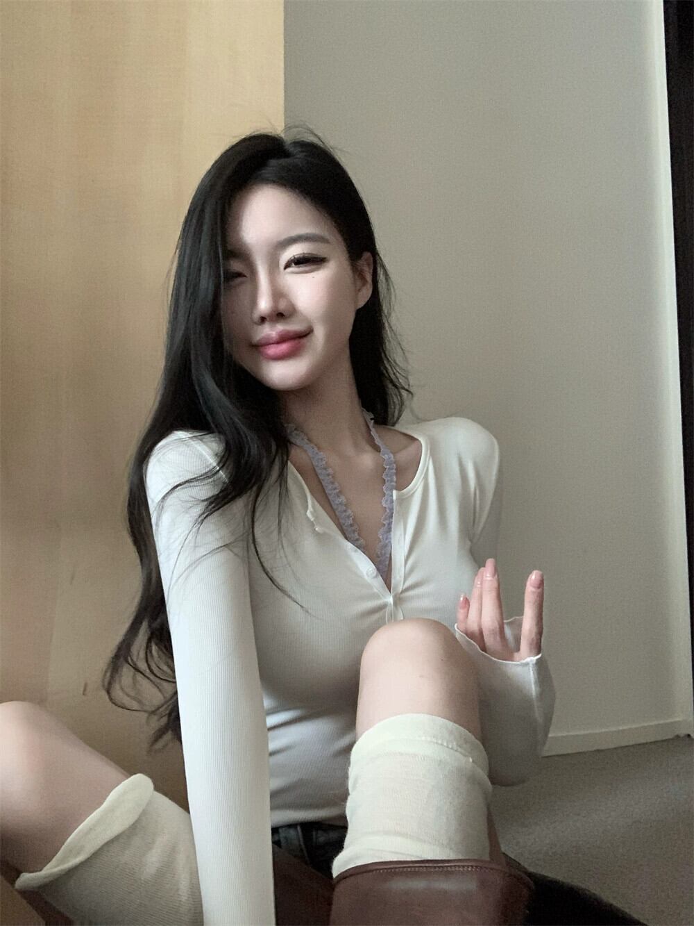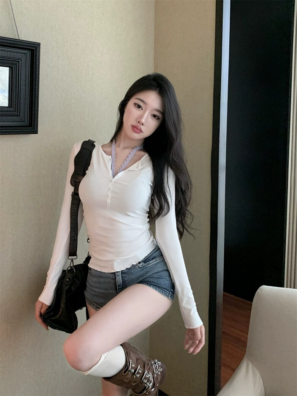 純粋な欲望スタイル白 v ネック長袖 tシャツ女性春 2024 新しいセクシーなスリムインナー底シャツトップ ロング ホワイト スプリング 春物 Vネック berry50499231562 | beaute25