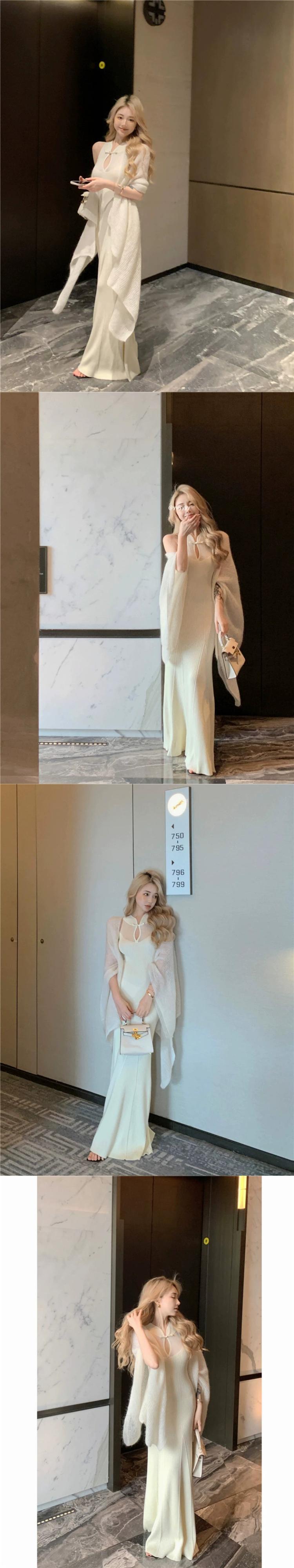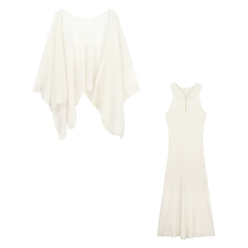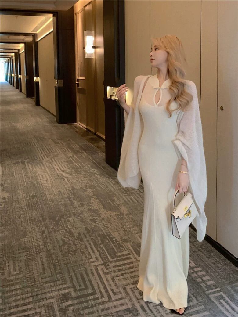 中国風バックルチャイナフィッシュテールドレスニットロングスカートスーツ女性の秋と冬のショールカーディガントップツーピースセット オータム 秋物 ウィンター 冬物 berry74687646924 | beaute25