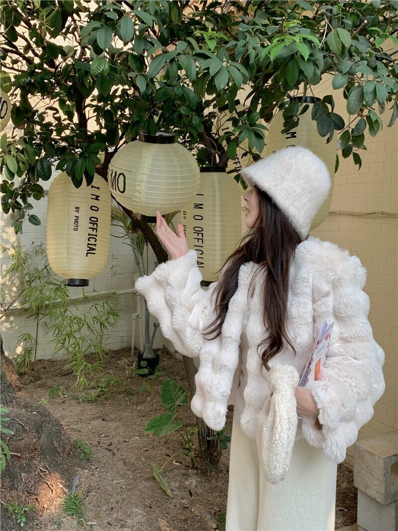 環境に優しい模造毛皮コートの女性の秋と冬のバージョン、小さく、ルーズで、短く、厚く、高級、白い毛皮のトップ ホワイト オータム 秋物 ウィンター 冬物 berry59532250947 | beaute25