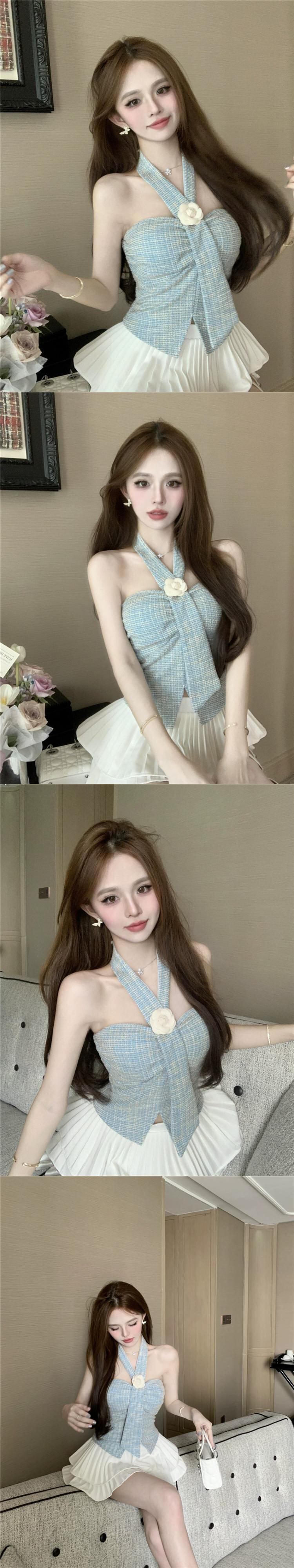 Xiaoxiangfeng 椿ホルターネックベスト女性の夏のレトロネクタイスリムショートノースリーブトップアウター 半袖 ハーフスリーブ サマー 夏物 berry96749619108 | beaute25