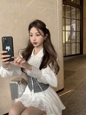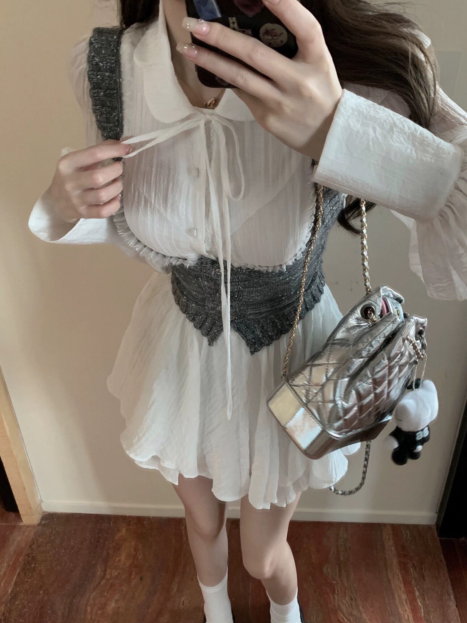 フランス宮殿スタイル長袖人形襟ドレス女性春白甘い気質スカートウエスト A ラインスカート ロング ホワイト レース 大人ガーリー スウィート キュート カジュアル スプリング 春物 Aライン berry24396653244 | beaute25