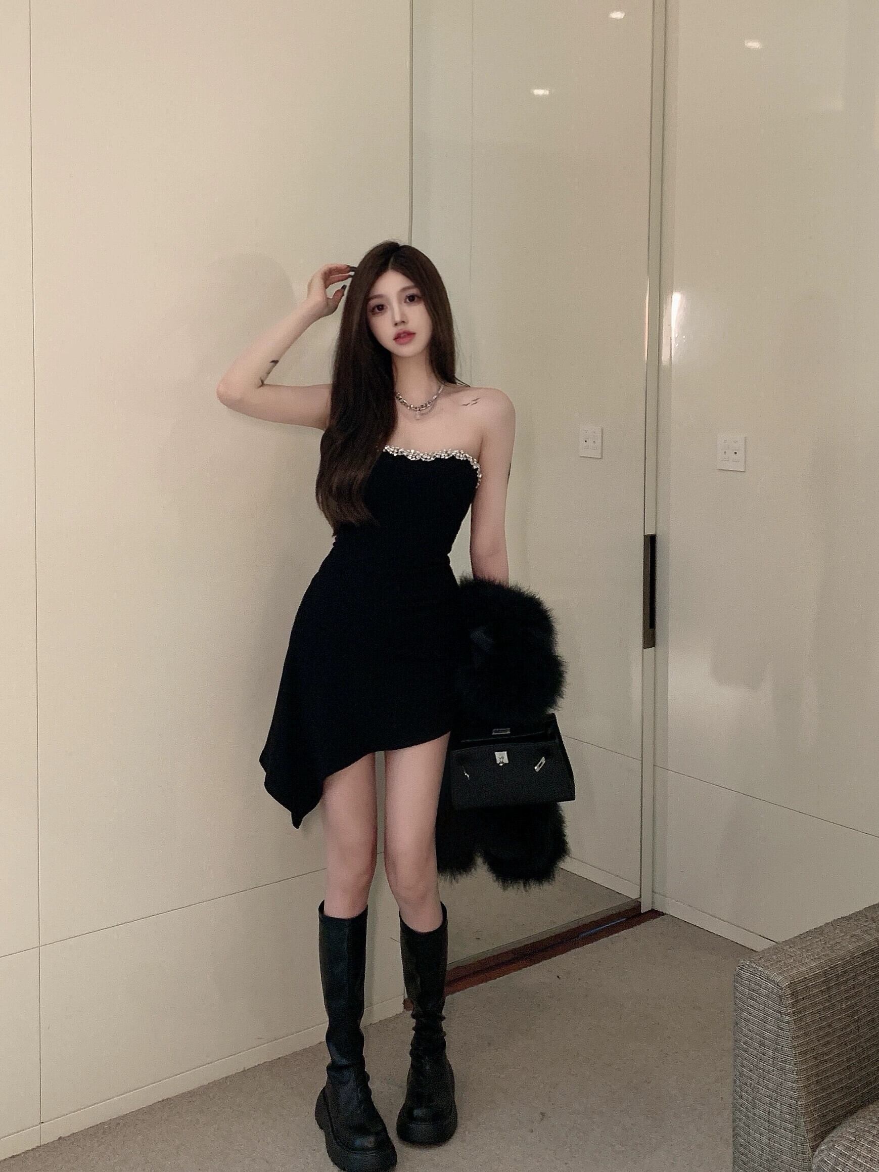 ブラックのチューブトップドレス、レディース早春の誕生日ドレス、ハイエンドのタイトフィットヒップハグロングスカート、ボトムインナースカート スプリング 春物 berry63468925094 | beaute25