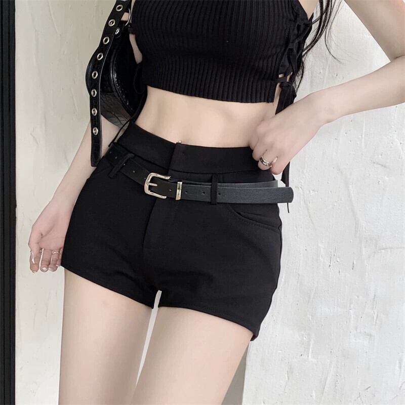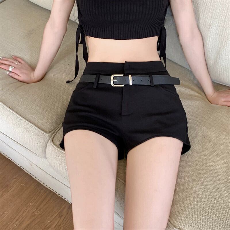 黒のハイウエストの小さなカジュアルショートパンツの女性の夏のアメリカンネクタイセクシーなパンツスリムストレートワイドレッグパンツ ブラック サマー 夏物 ショーツ ブルマー berry92206072445 | beaute25
