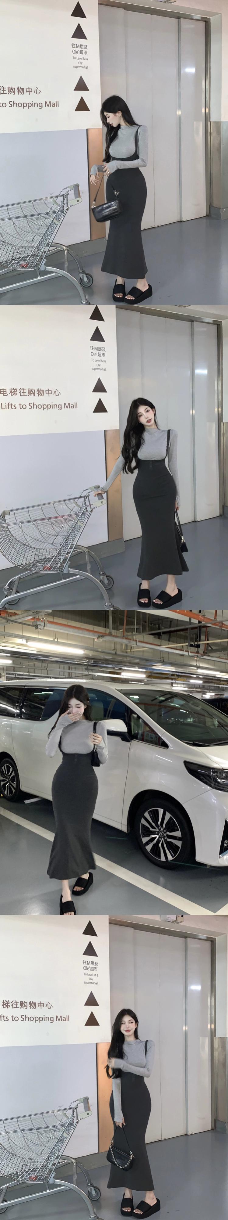 純粋な欲望サスペンダードレス女性春スタッキングホットガールズタイトリトルママスカートヒップカバーミッドレングスフィッシュテールスカート スプリング 春物 berry13931204871 | beaute25