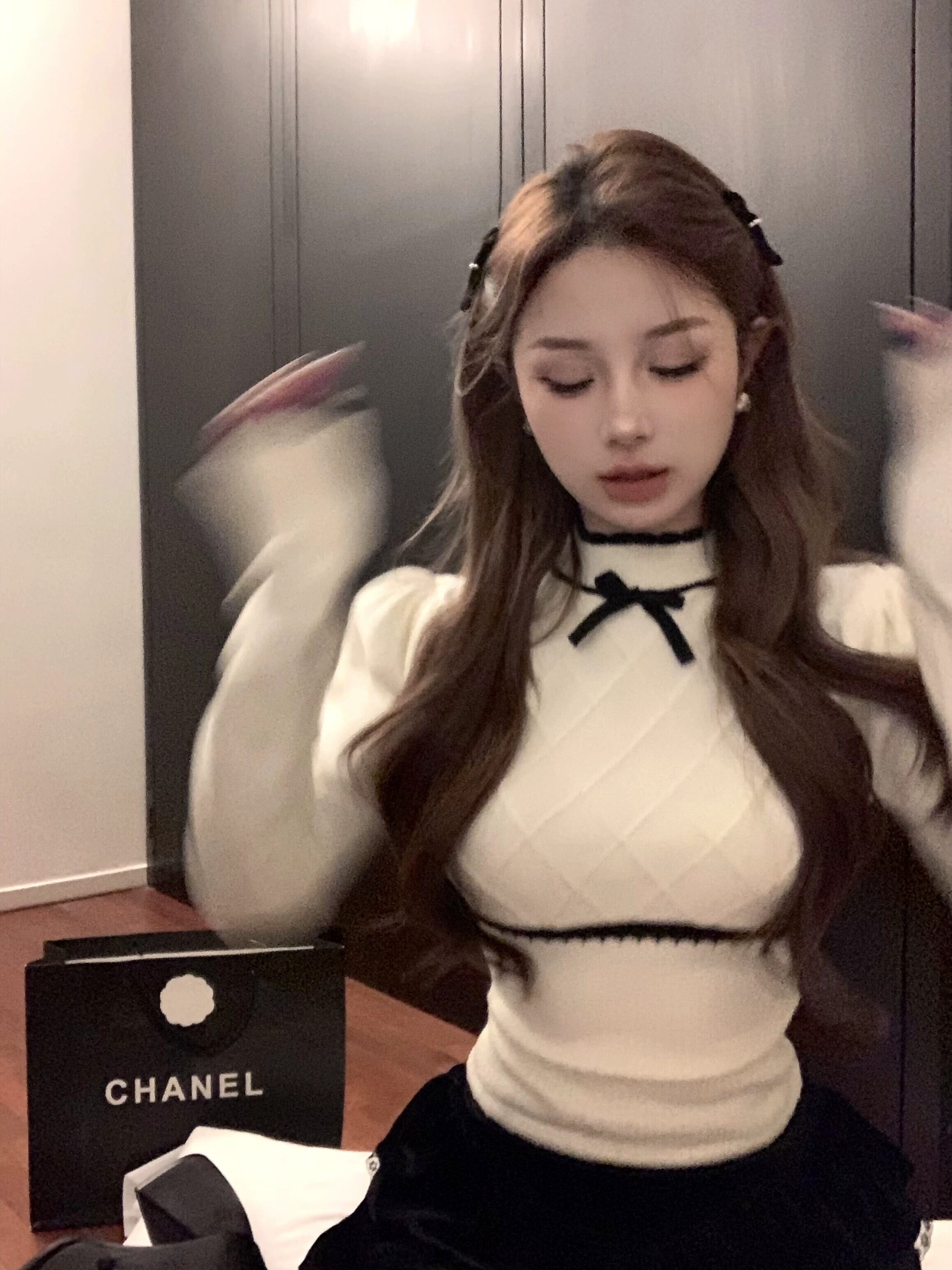 Xiaoxiangfeng スタンドカラーリボンニットセーター女性の秋と冬フレンチ長袖ボトムセータースリムインナートップ ロング オータム 秋物 ウィンター 冬物 berry81091735739 | beaute25