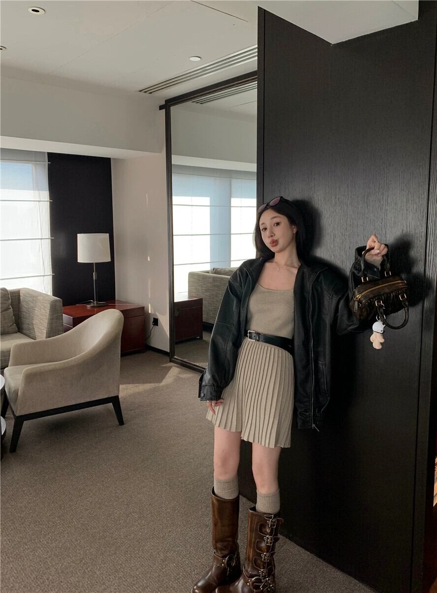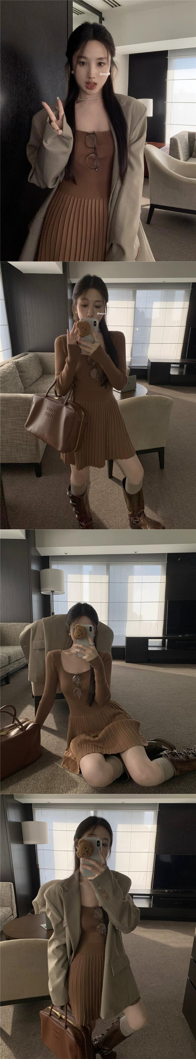 スクエアネック長袖ニットドレス女性春スリムフィットボトスカートウエストプリーツ A ラインセータースカート ロング スプリング 春物 Aライン スクウェア berry22303307827 | beaute25