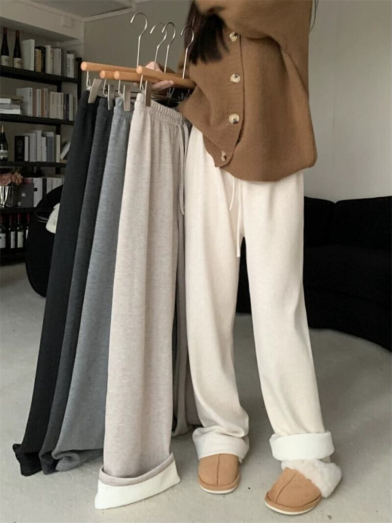 ベルベット肥厚カジュアルストレートパンツ女性春の新スタイルハイウエストワイドレッグパンツルーズで多用途なフロアモップパンツ ハイウェスト スプリング 春物 ワイドパンツ berry24660559117 | beaute25