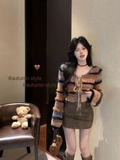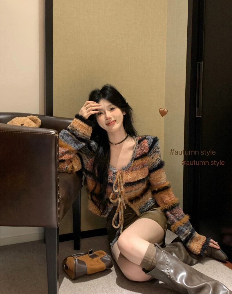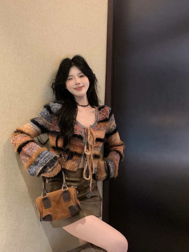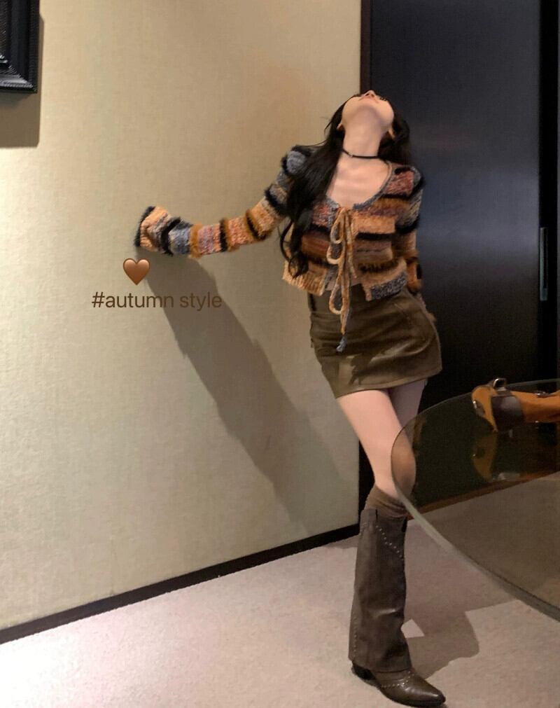 色:セーターカーディガン,レザースカート