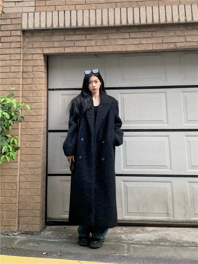 ヘップバーンスタイル黒厚いウインドブレーカーウールコートレディース秋冬新作コートルーズミッドレングス膝上トップ ブラック オータム 秋物 ウィンター 冬物 berry26052016935 | beaute25