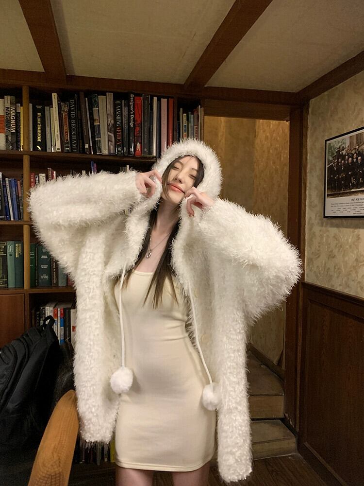 模造ミンクベルベットのフード付き肥厚セータージャケット女性の秋と冬のゆるい怠惰なスタイルニットカーディガン胸トップ オータム 秋物 ウィンター 冬物 berry58353790790 | beaute25