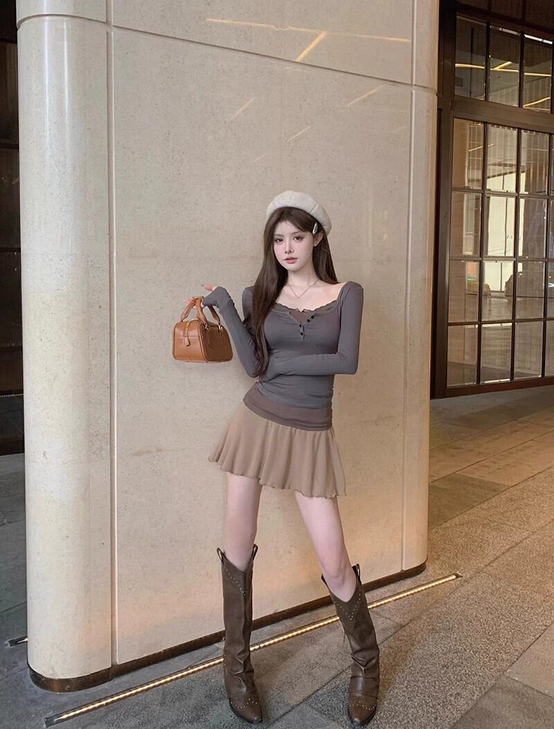 色:グレートップ,薄茶スカート
