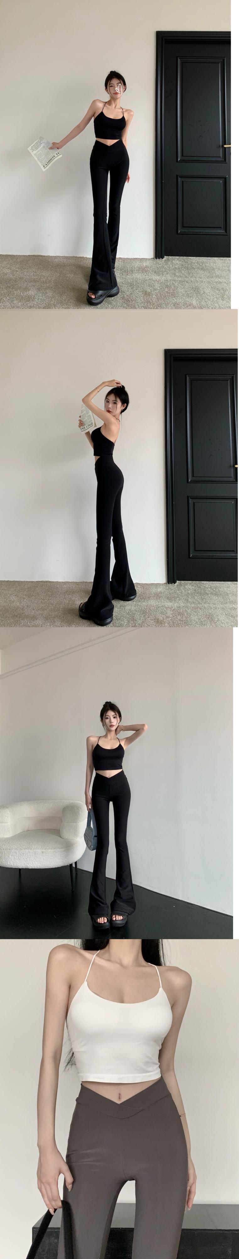 春の黒の V ウエスト カジュアル パンツ レディース、ハイウエスト、ヒップリフティング、痩身、マイクロ フレア パンツ、床までの長さの馬蹄パンツ、ズボン レッド ブラック スプリング 春物 berry41120350846 | beaute25