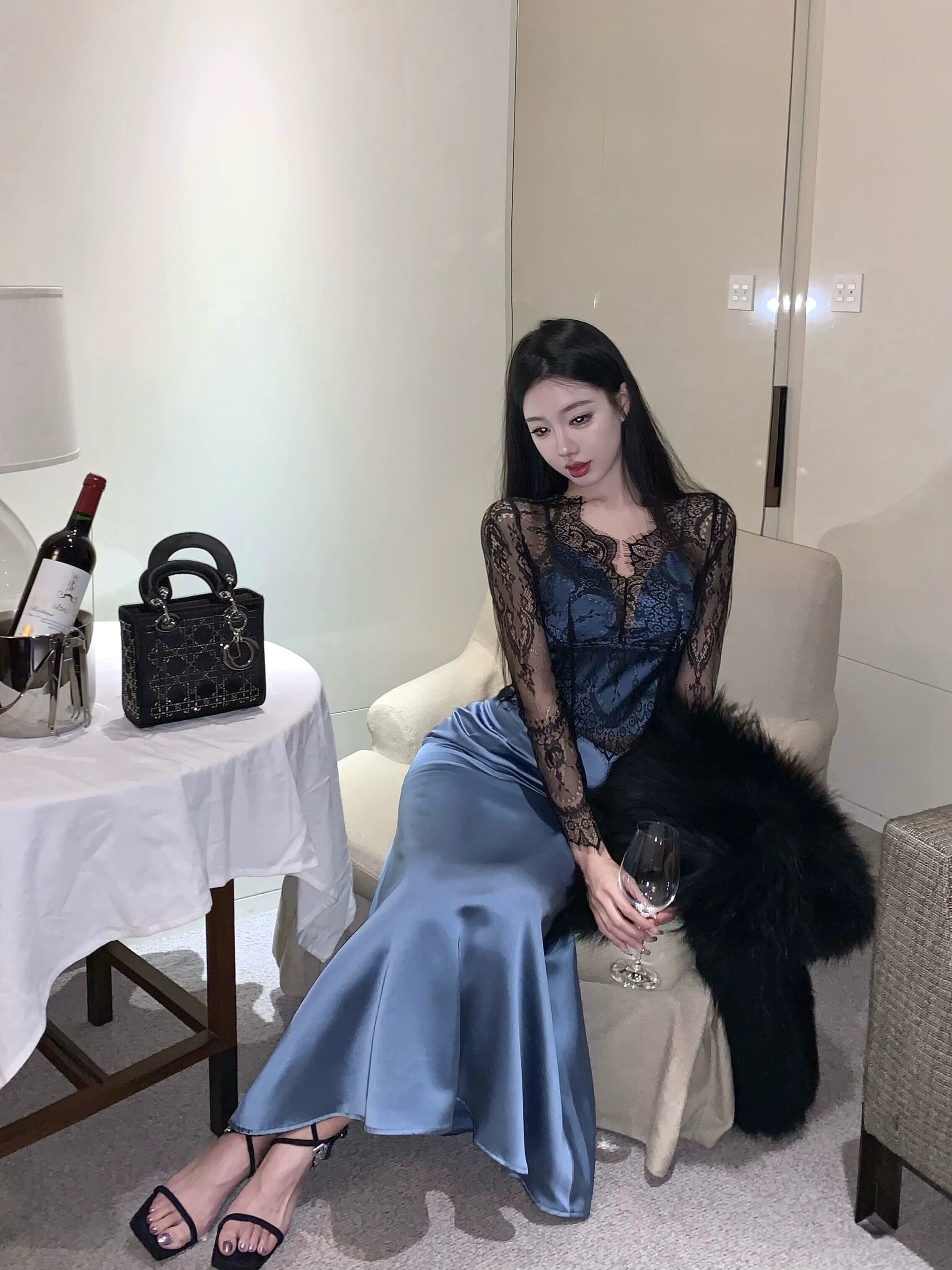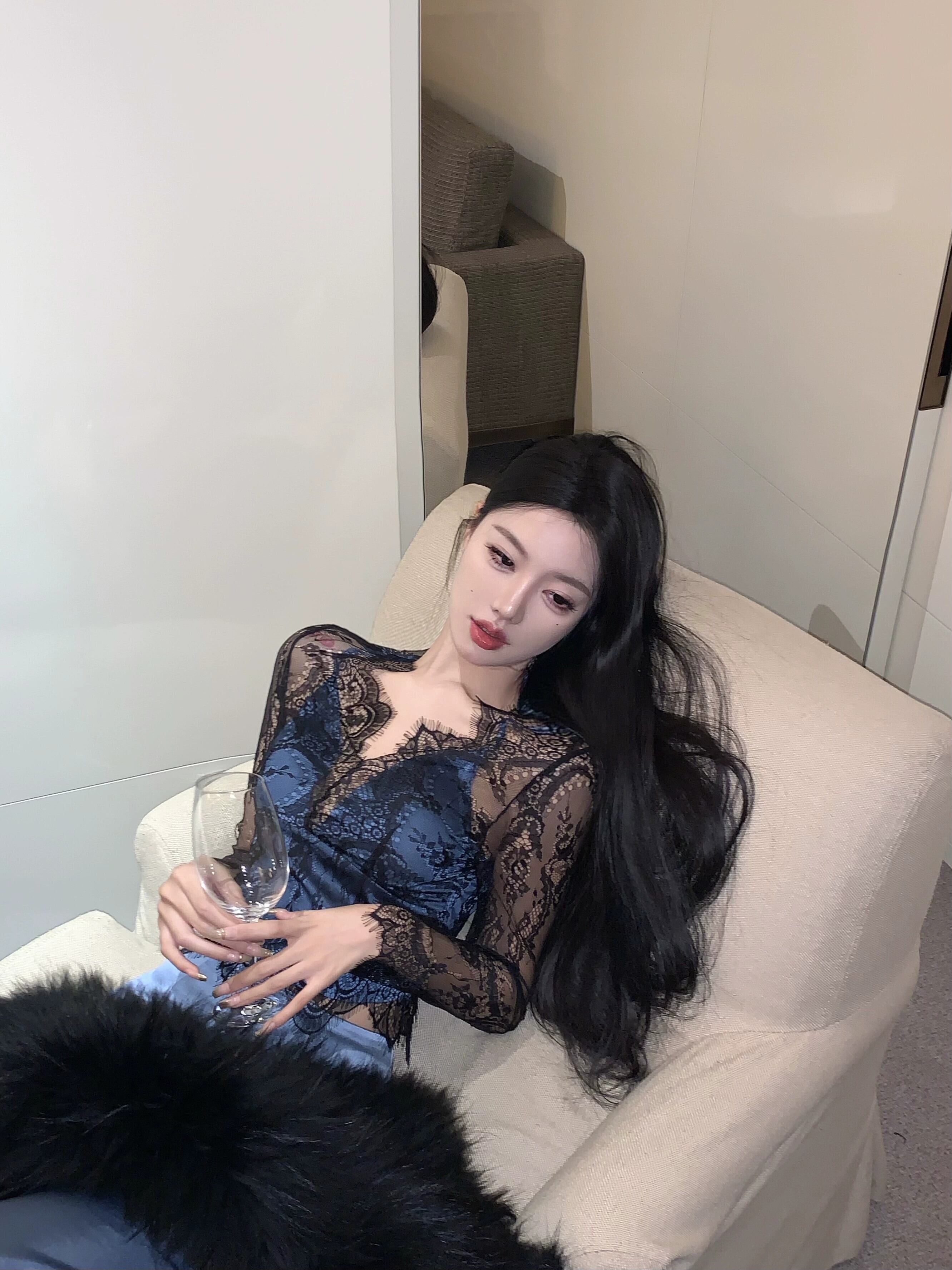 レースメッシュ長袖シフォンシャツレディース、新しい冬のタイトフィットでスリムなインナーレイヤー、薄い純粋な欲望スタイルのショートトップ ロング ウィンター 冬物 ピュア berry80879733455 | beaute25